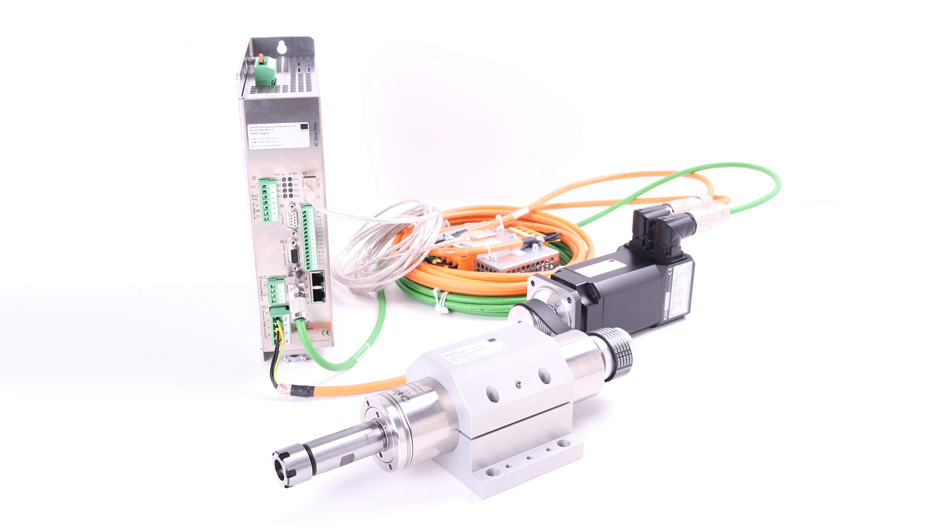 Wir bieten Ihnen eine breite Palette von Komponenten und Zubehör für alle Spindeltypen. Egal, ob Sie eine Motor Fräs- oder Schleifspindel, einen Frequenzumformer für die präzise Steuerung der Spindeldrehzahl, Spindelkühlgeräte für optimale Leistung oder Anschlusskabel und Riemenscheiben benötigen – wir haben alles, was Sie brauchen, um Ihr Spindelsystem komplett auszustatten.