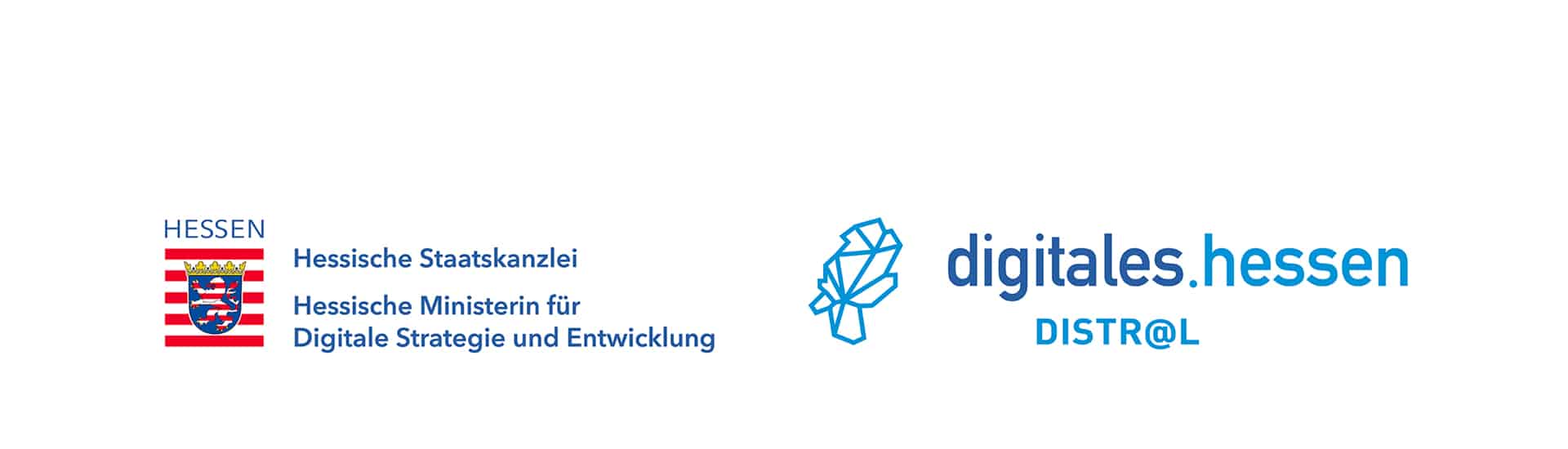 Dieses Projekt wird durch die Hessische Staatskanzlei – Ministerin für Digitale Strategie und Entwicklung (Förderlinie Distr@l: Digitalisierung stärken – Transfer leben; Förderkennzeichen 21_0058_2A) gefördert. Wir danken für die Möglichkeit dieses Projekt bearbeiten zu dürfen.
